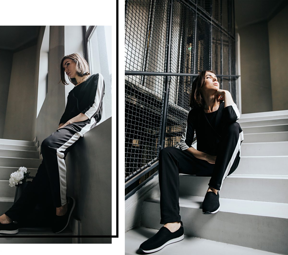 Salopeta cu dunga laterala | Tenisi negri |Geanta tip sac |